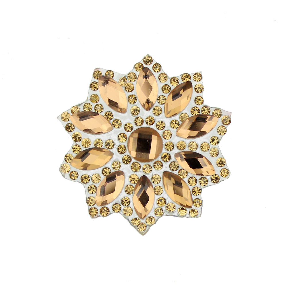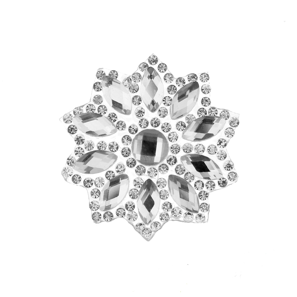 Aplicación termoadhesiva de 3.8 x 3.8 cm con piedras acrílicas y pequeños Swarovski.