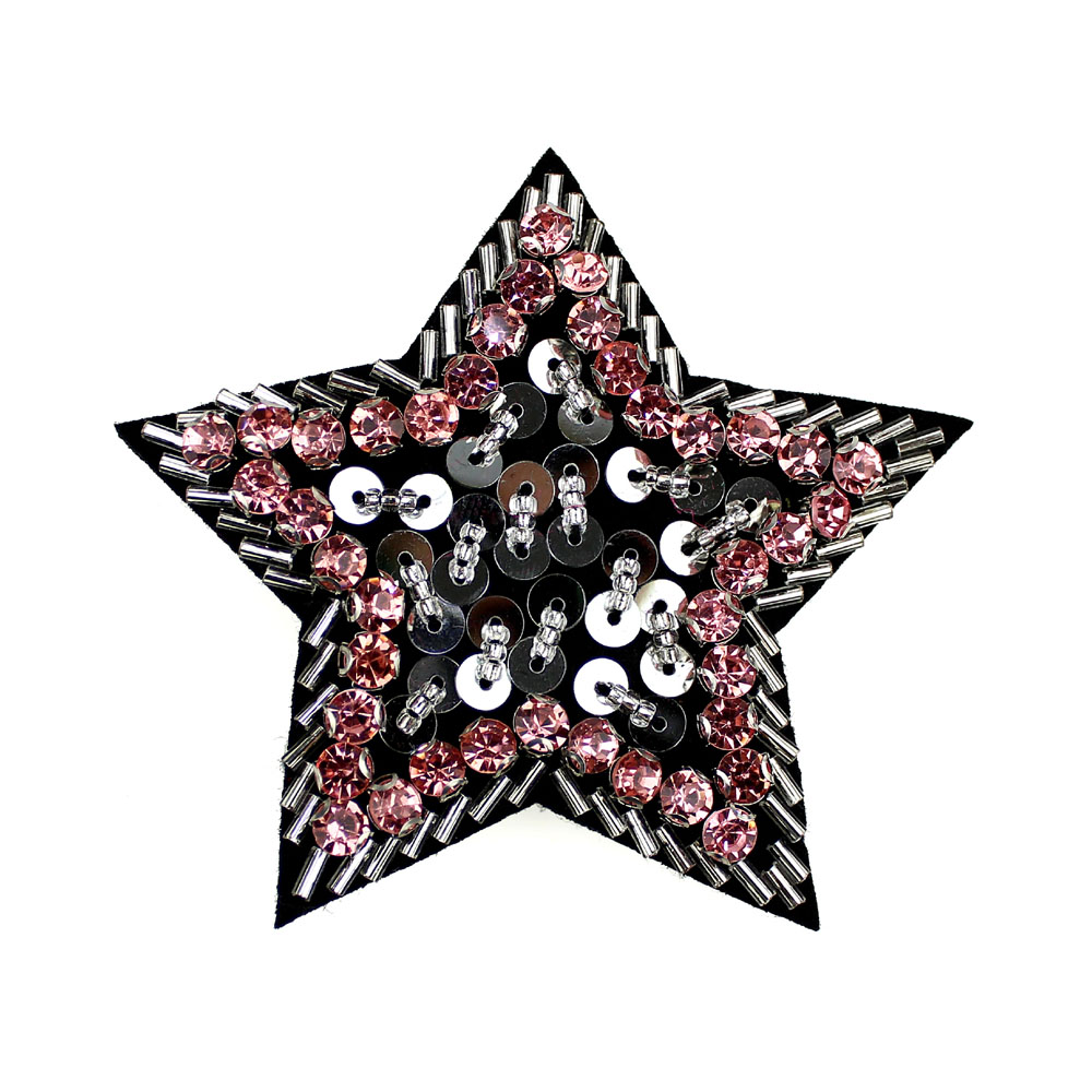 Appliqué en pierres, strass et paillettes sur feutrine. Mesure 08cm.