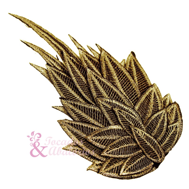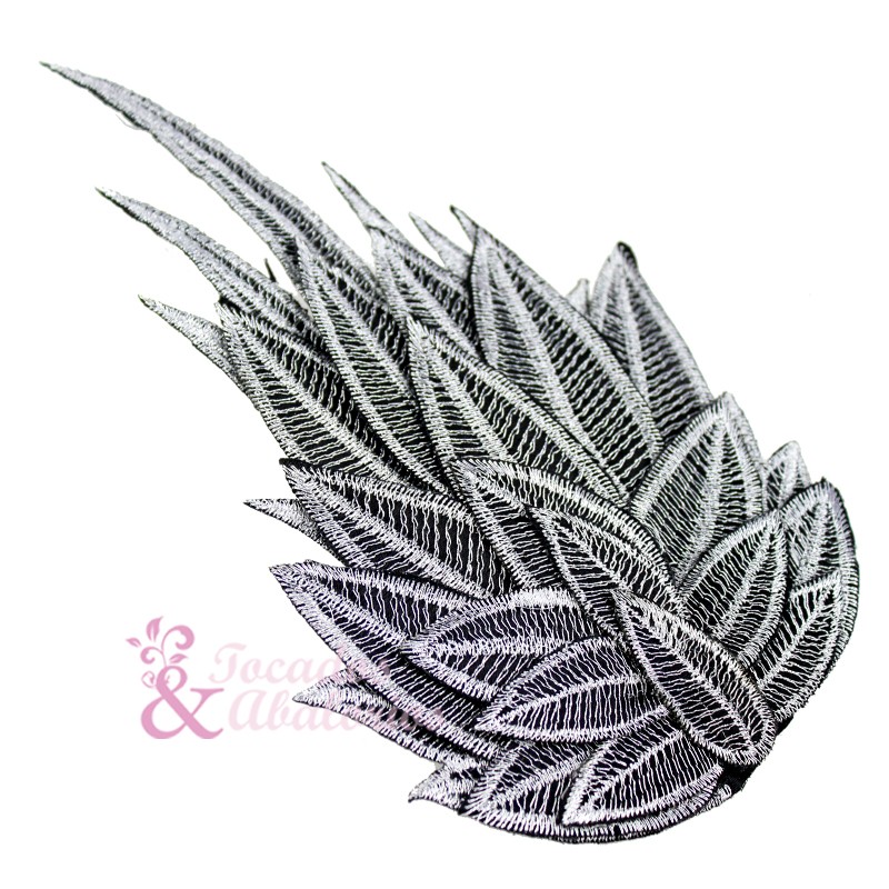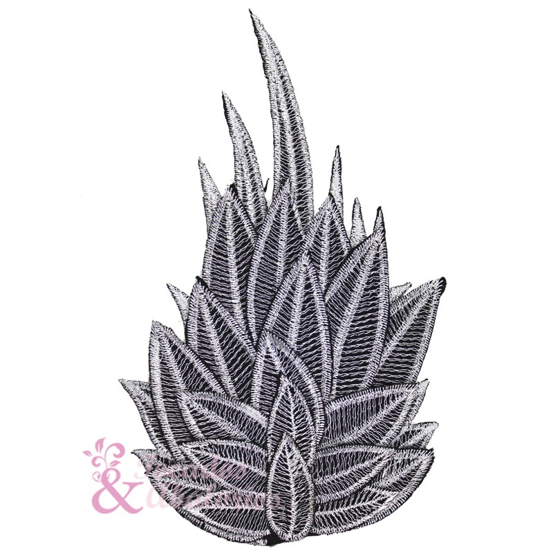 Appliqué brodé en plusieurs couches, il a du volume grâce aux feuille en forme de pétales. Mesure 18x10cm.