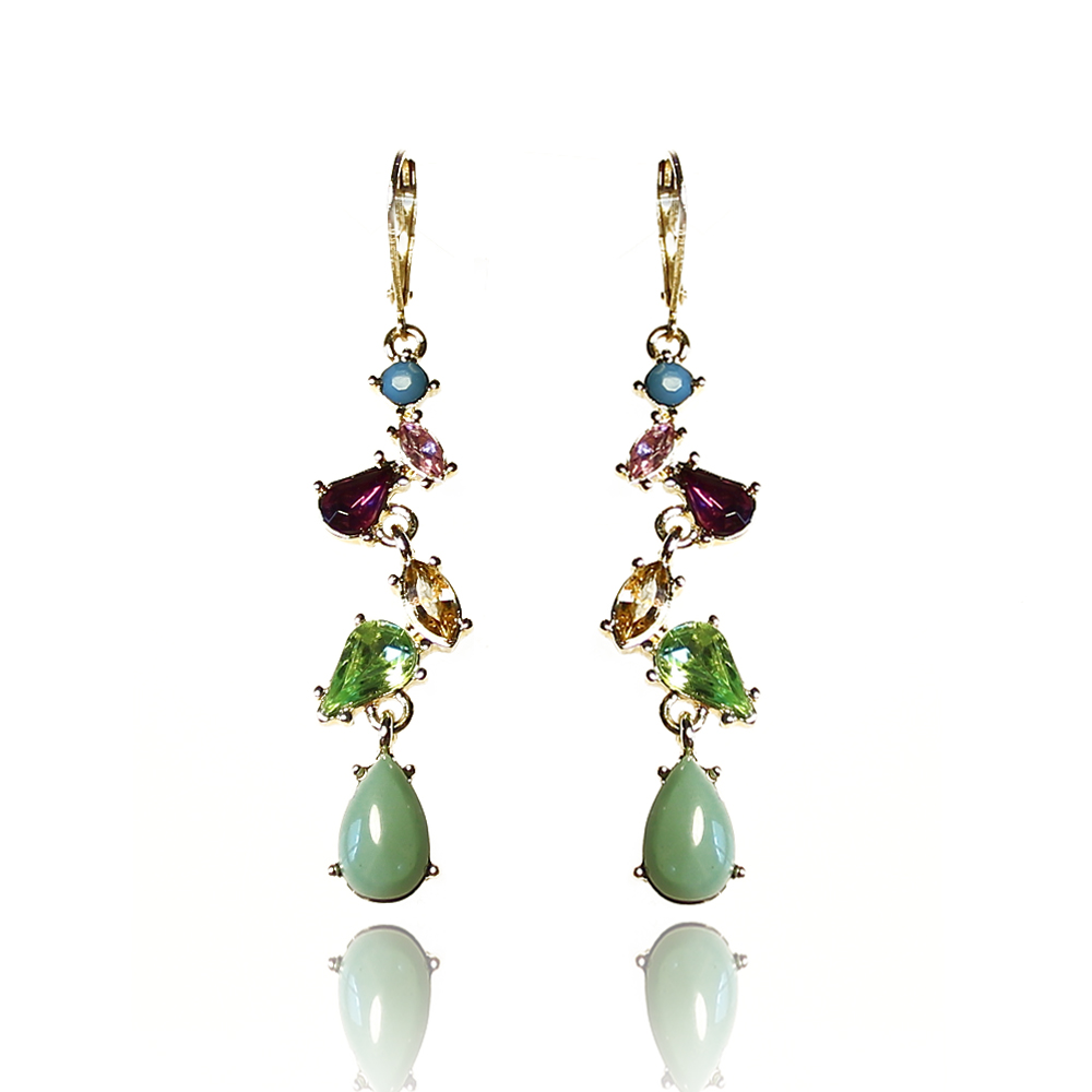 Boucles d’oreilles en métal et verre de 6 x 1 cm.