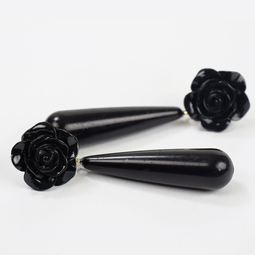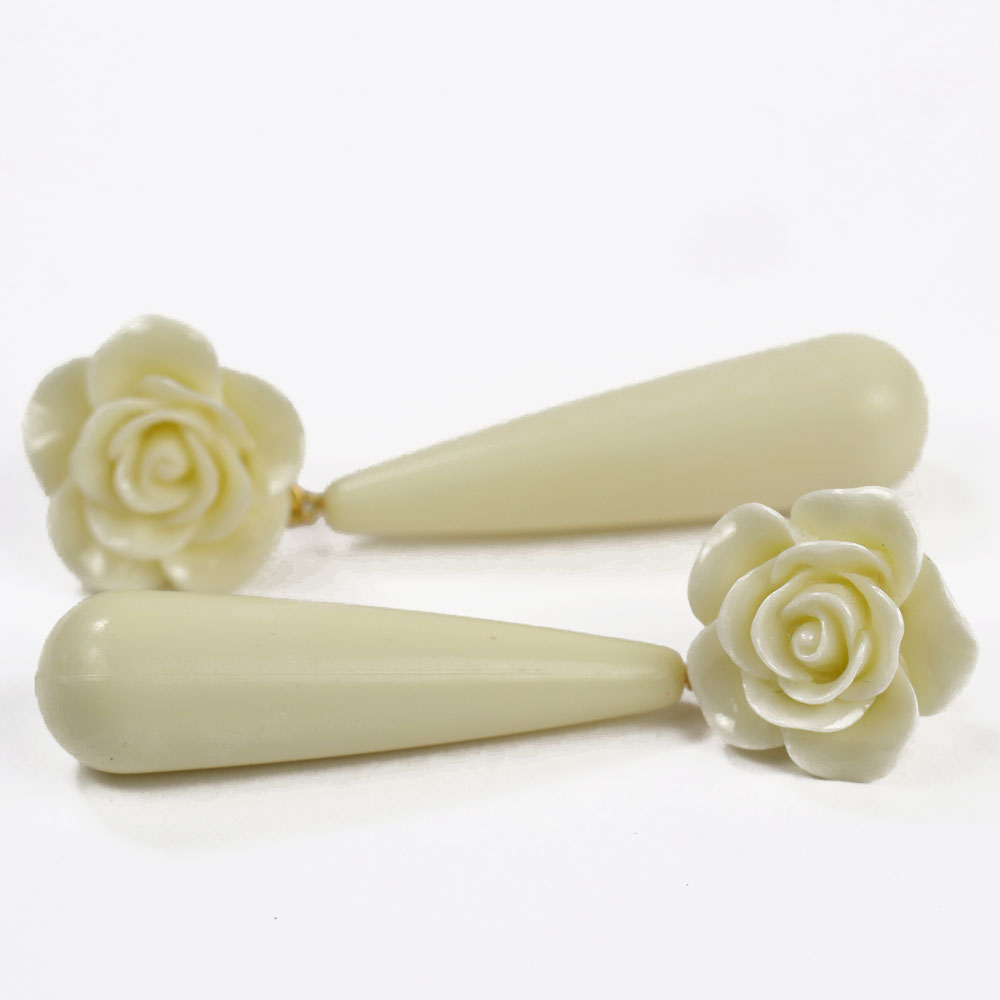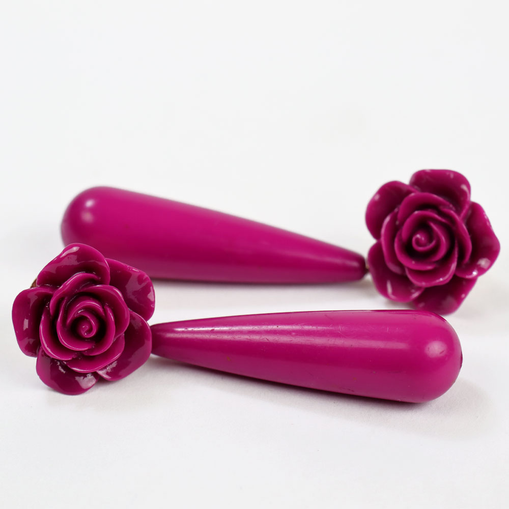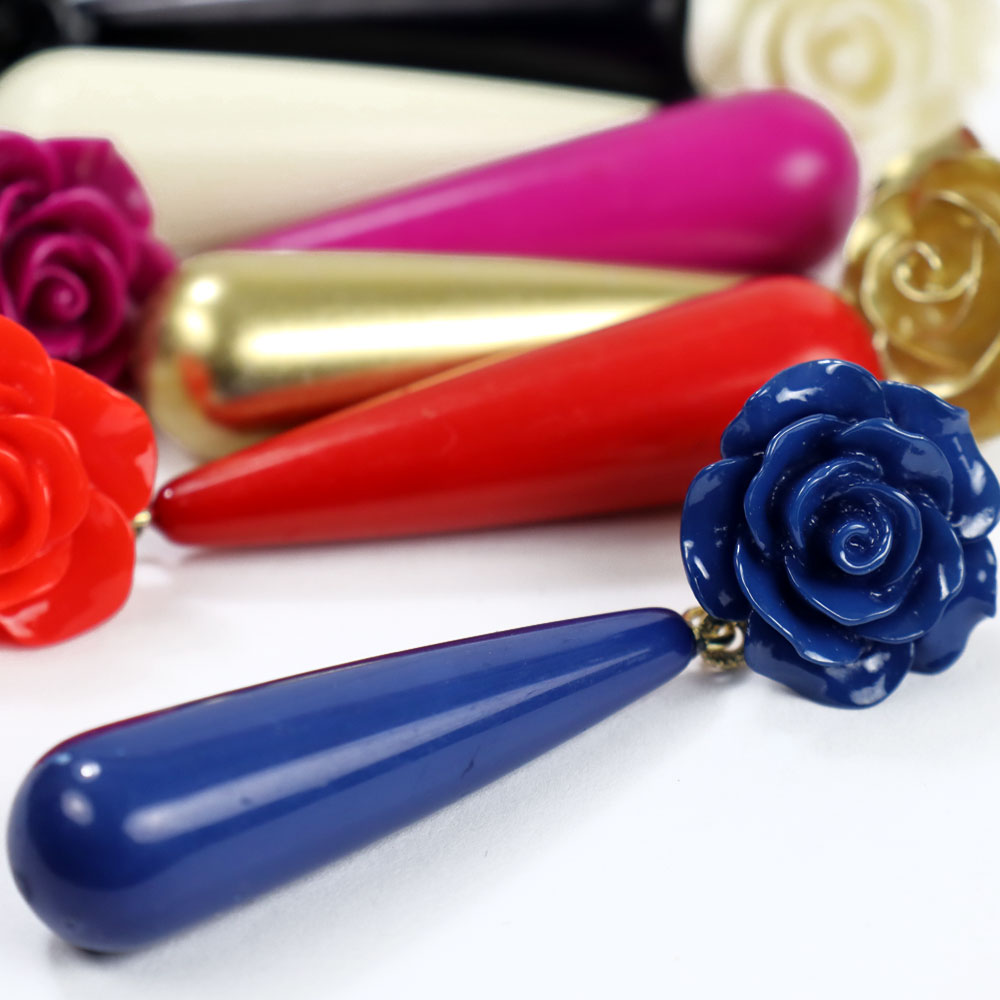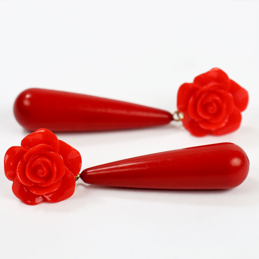 Ces boucles d’oreilles en résine, légères et confortables, sont ornées d’un pendentif en corail de 4 cm de long et se ferment par une poussette.