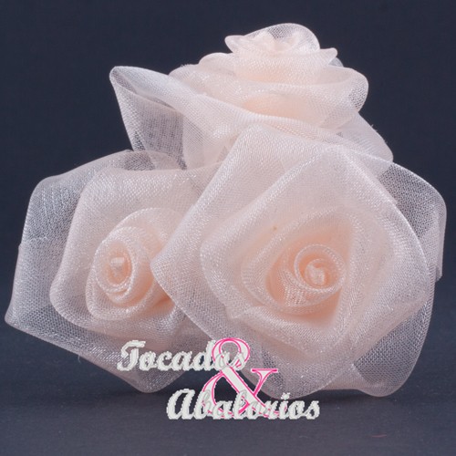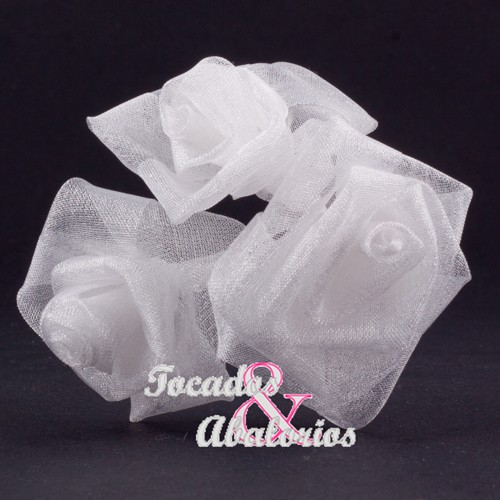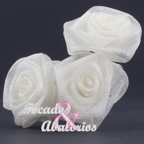 Bouquet de 3 roses de 04cm de diamètre en organdi.