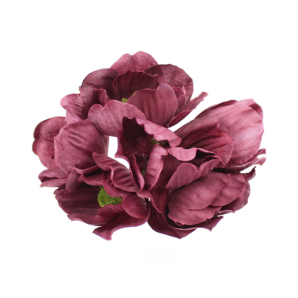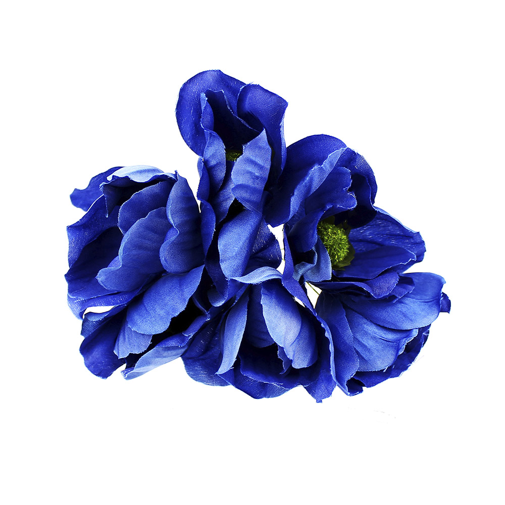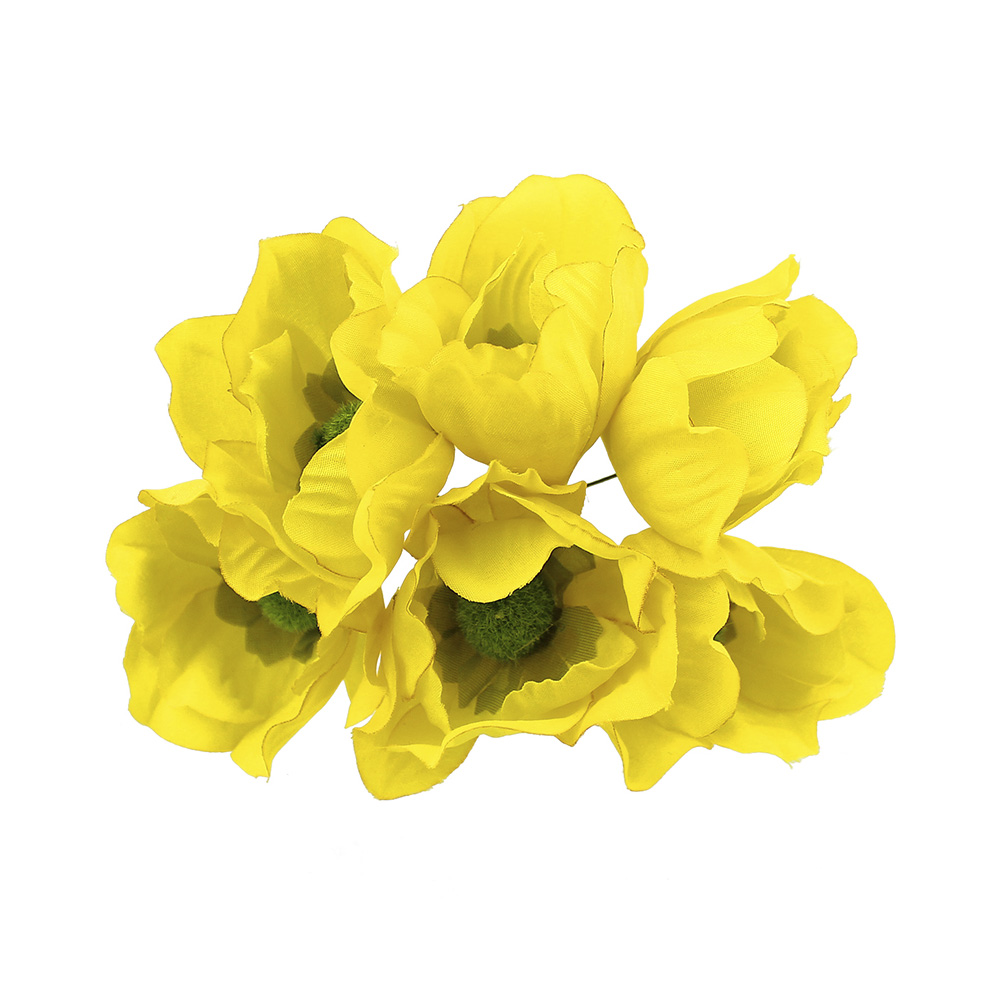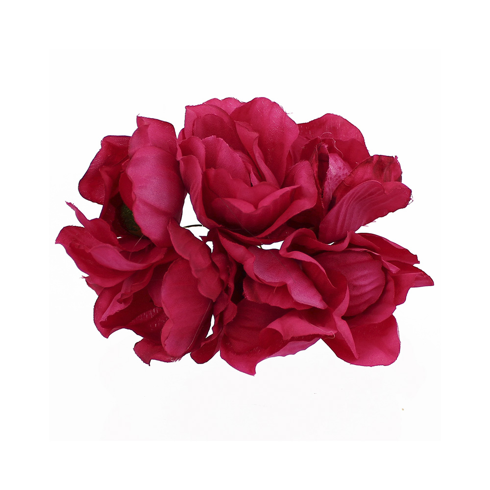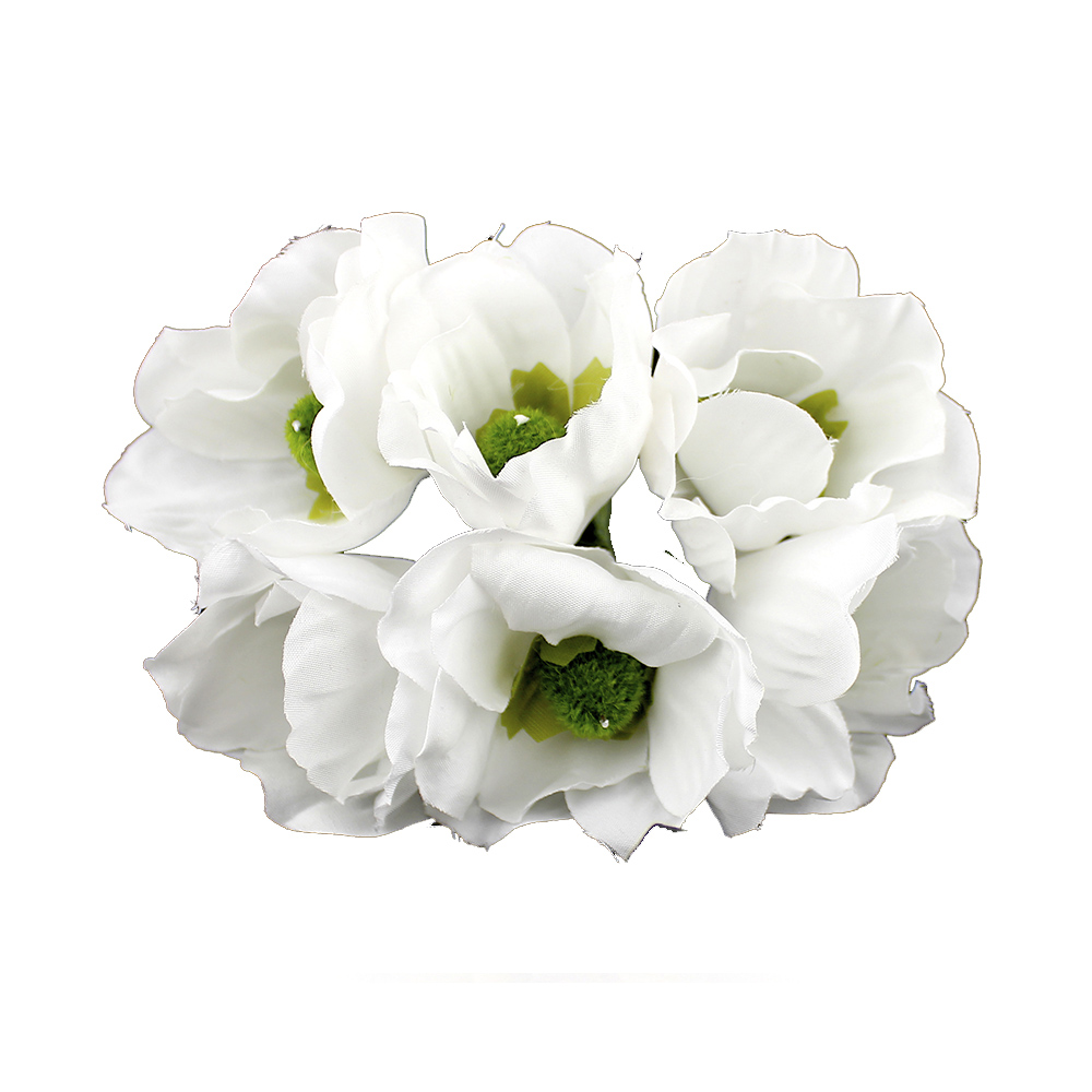 Bouquet composé de 6 fleurs en tissu et mesure 5cm. chacun indépendant, avec une tige de 8cm.