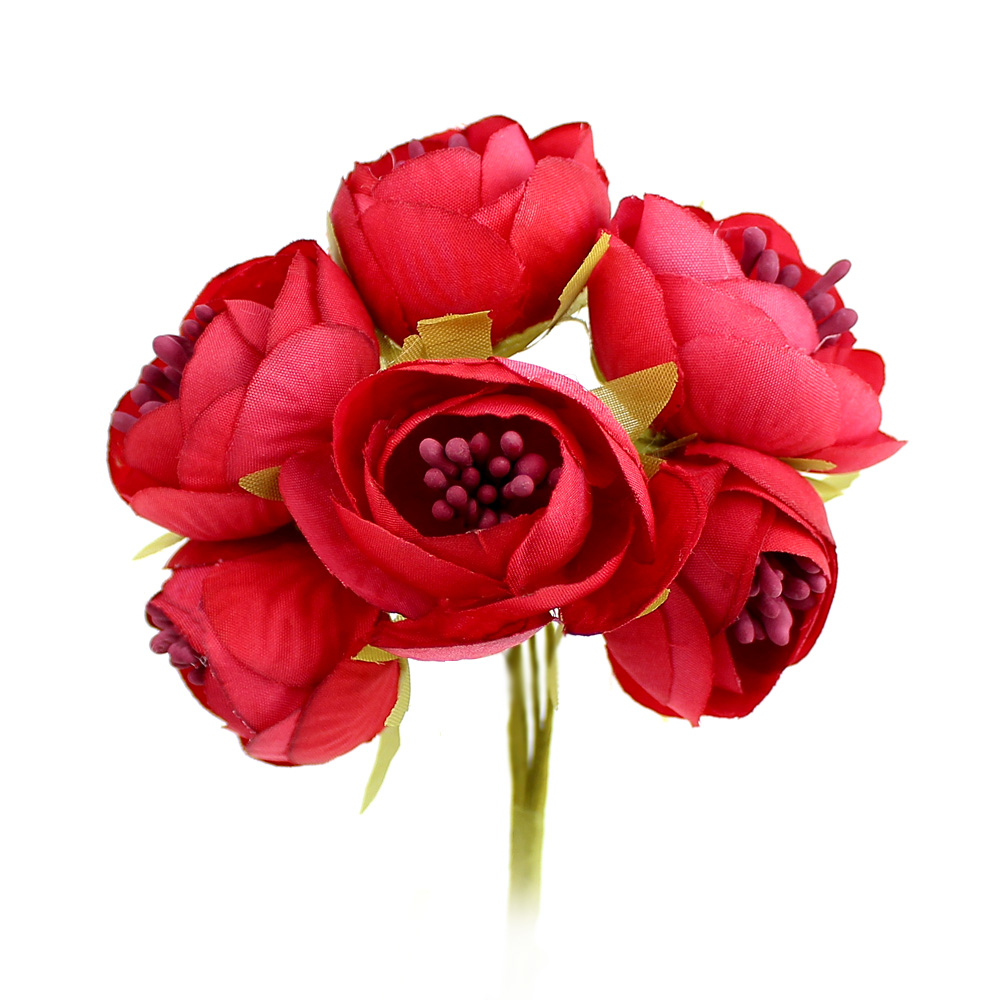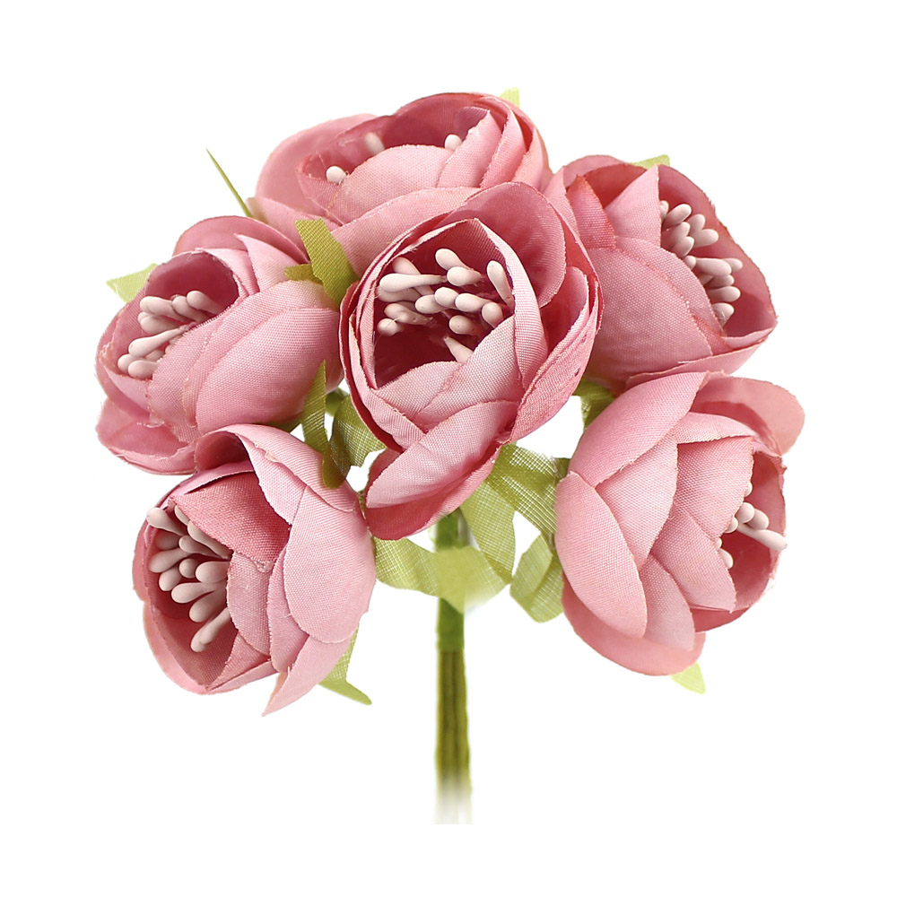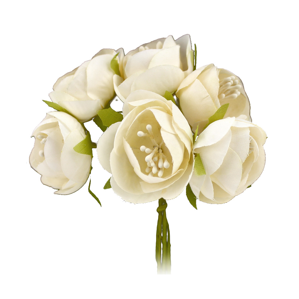 Bouquet Lara composé de 6 fleurs de 3,5cm de diamètre faites en tissu et fil de fer.