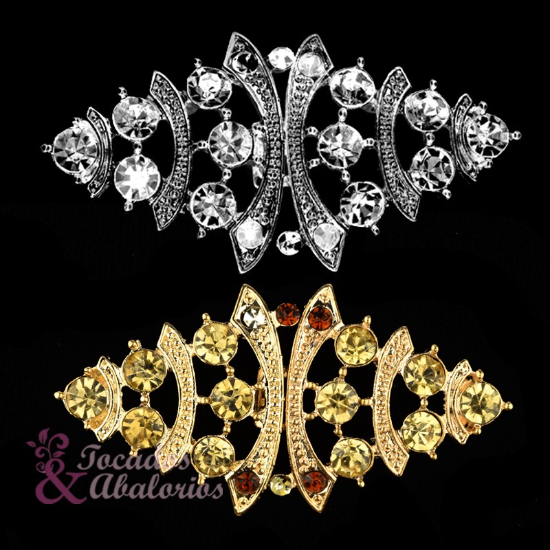 Broche de metal y piedras brillantes de 5.5 x 3 cm. Este broche es ideal para decorar sus vestidos y prendas de vestir, así como para poner en turbantes