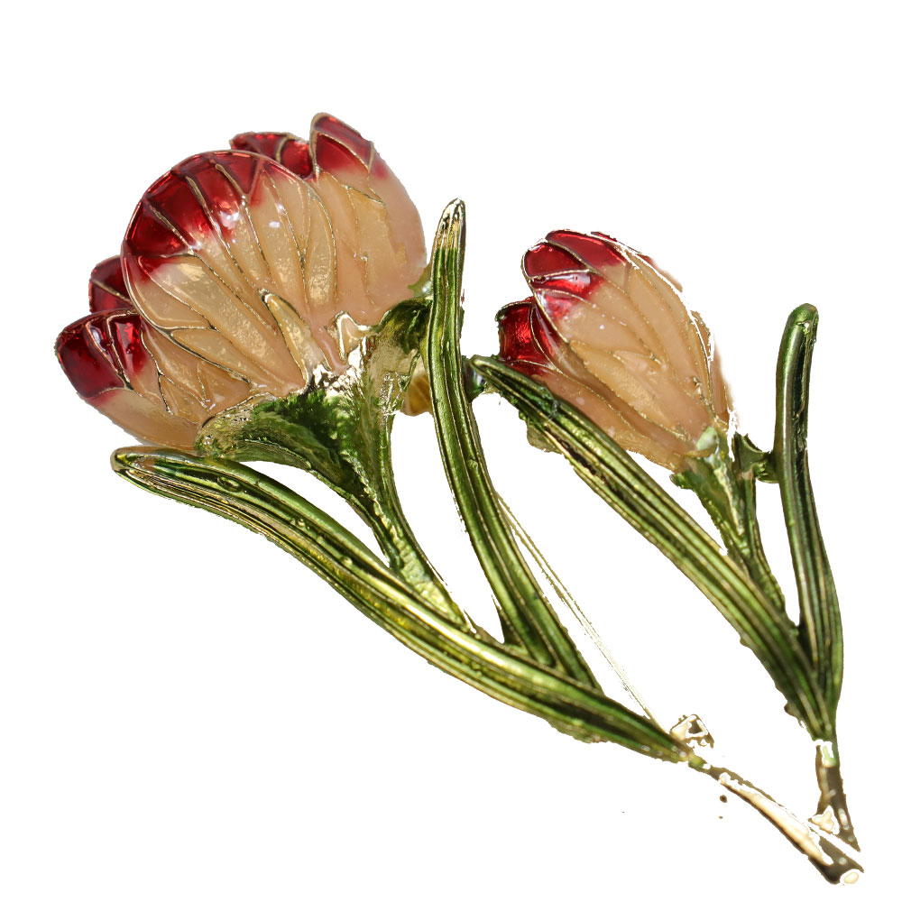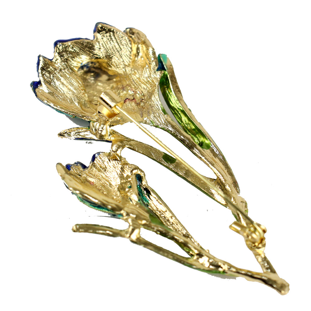 Broche en métal mesurant 7 x 4 cm avec fermeture à épingle et système de sécurité.