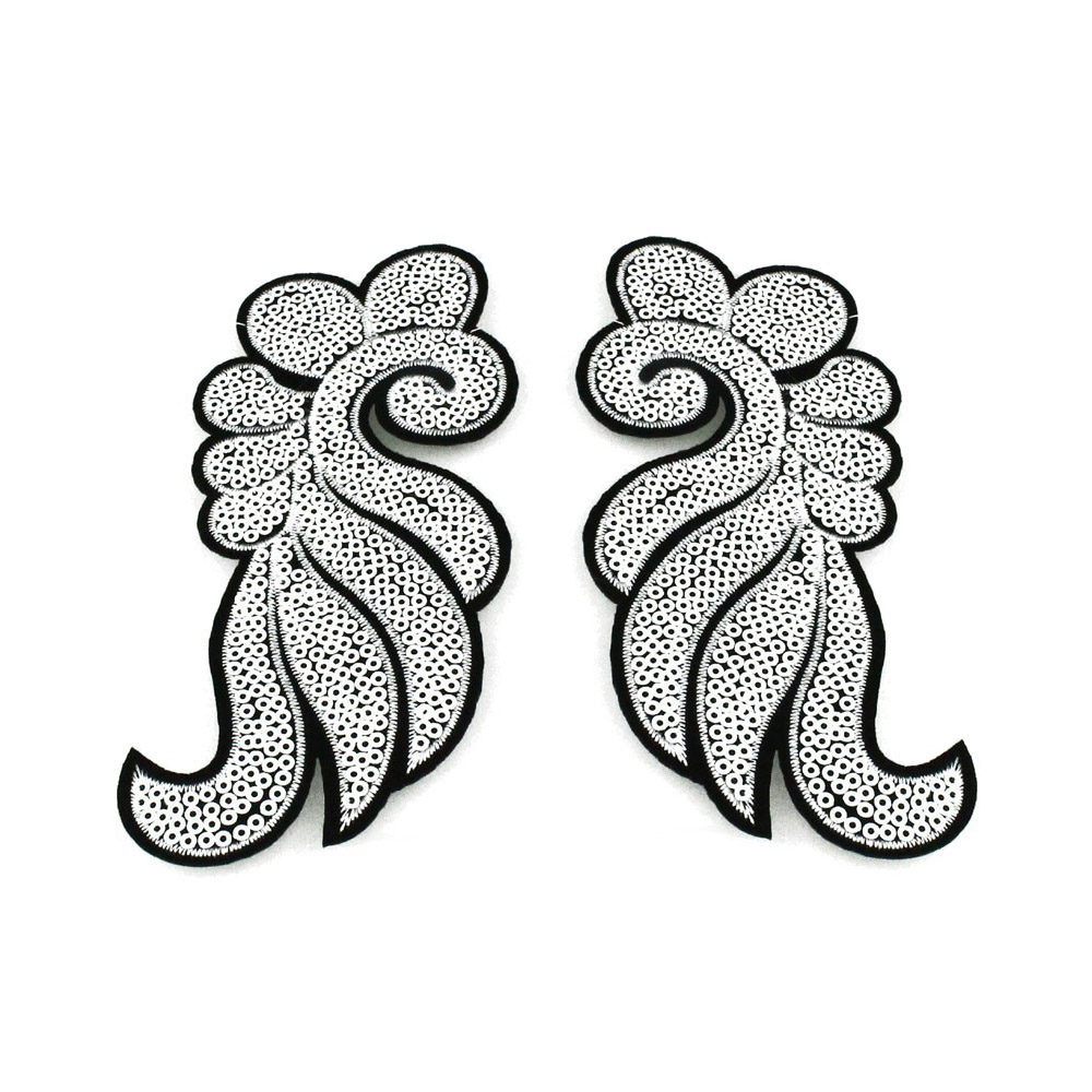 Épaulière thermo-adhésive 15x6cm. brodé et cousu de paillettes. La paire droite et gauche sont vendues.