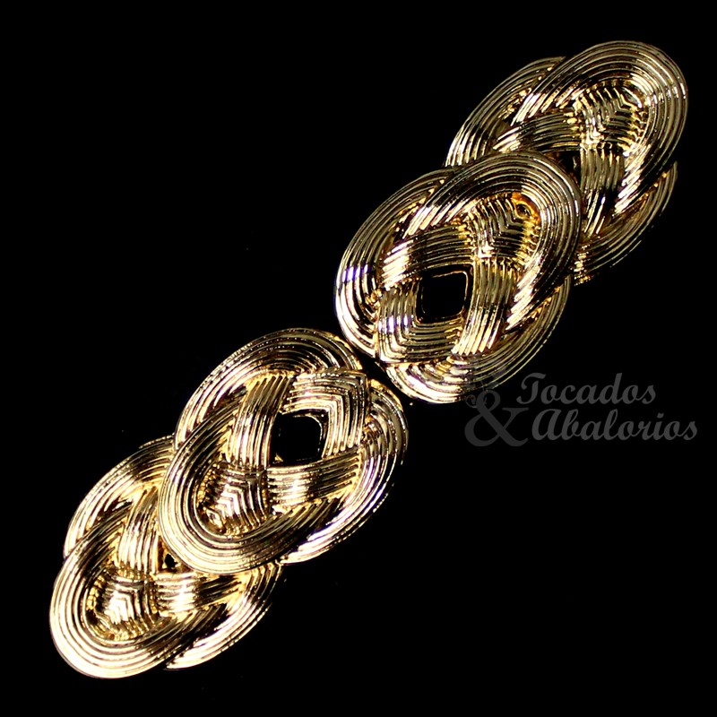 Cierre metálico dorado. Medidas 08x02cm. Ideal como broche de cinturón o como acabado de otro accesorio. Tornillos de fijación traseros incluidos.