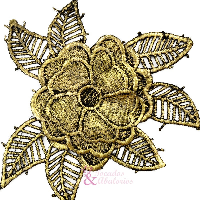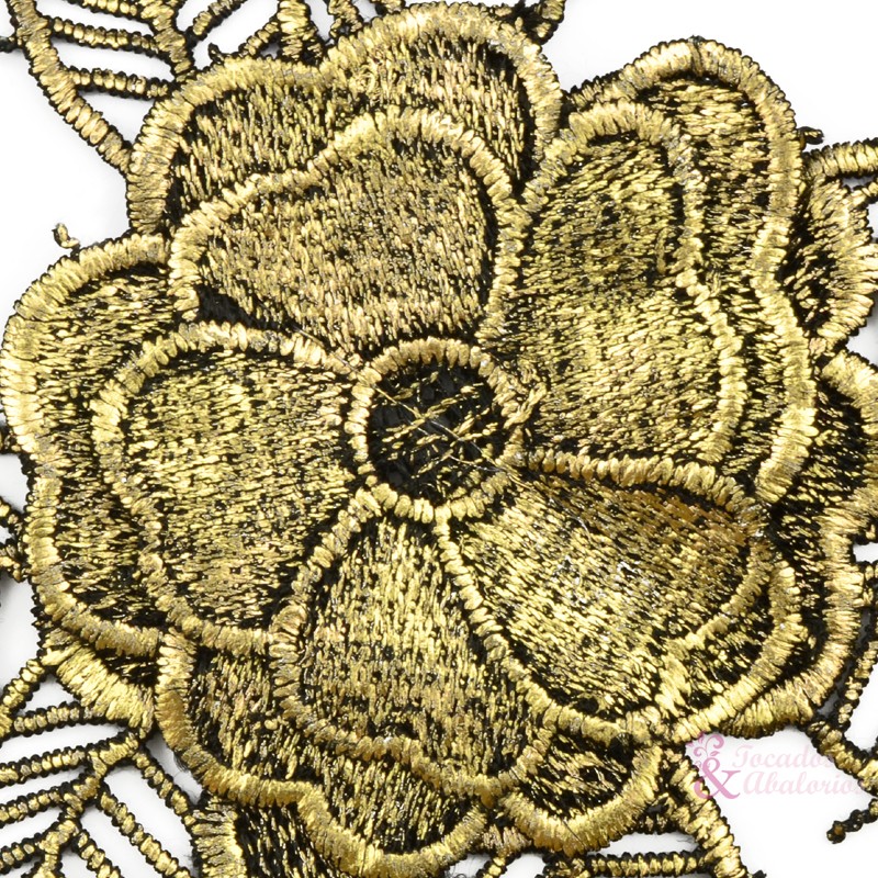 Fleur brodée en fil noir peint en doré dans la partie supérieur. Mesure 16x14cm. Vendue à l’unité.