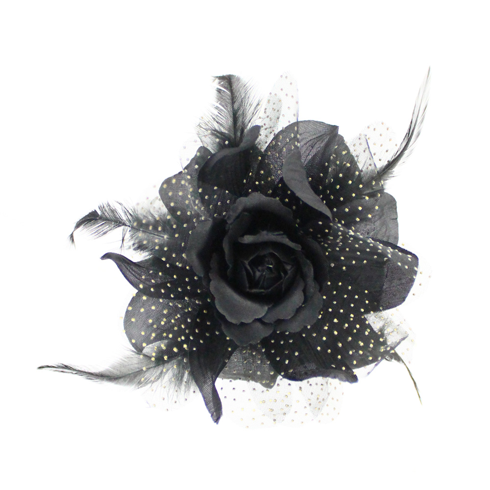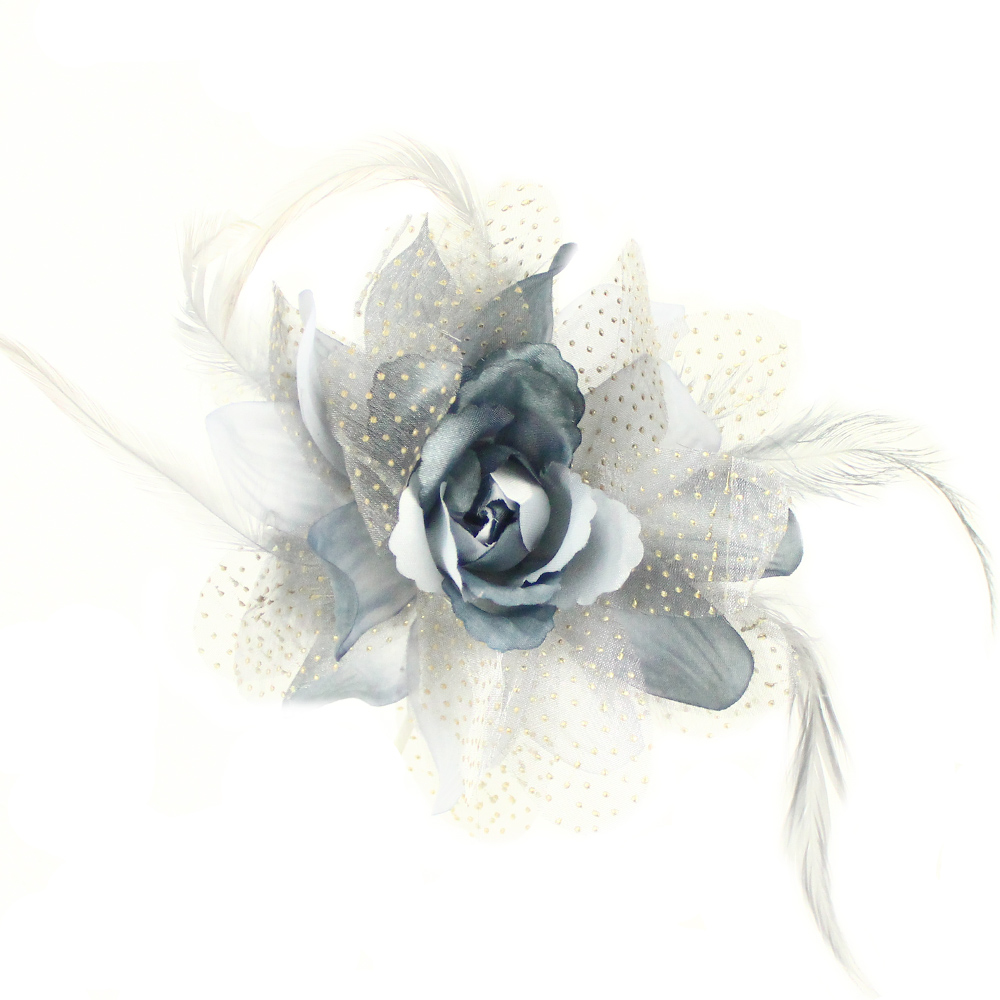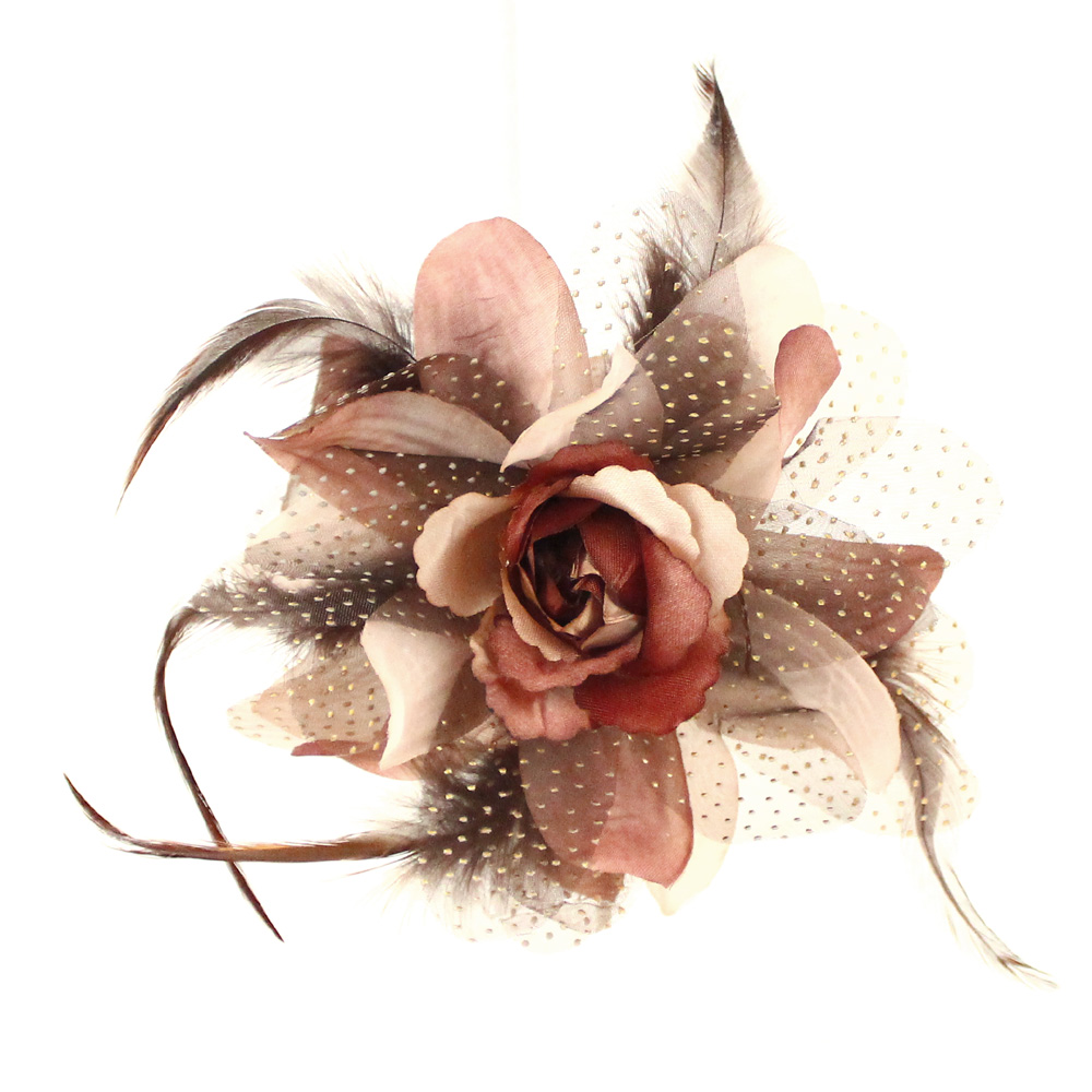 Fleur en organza et plumes. Mesure 14cm.
