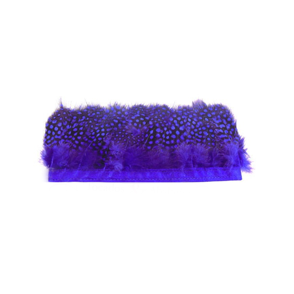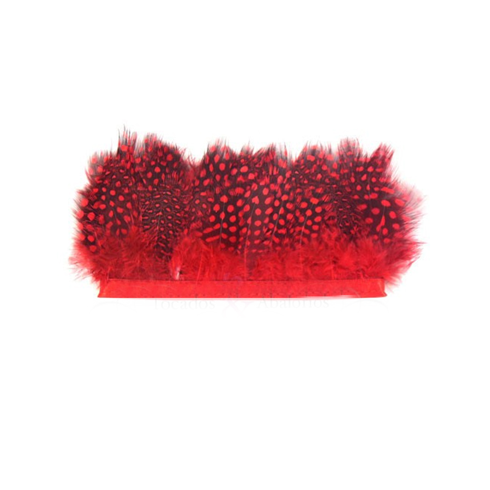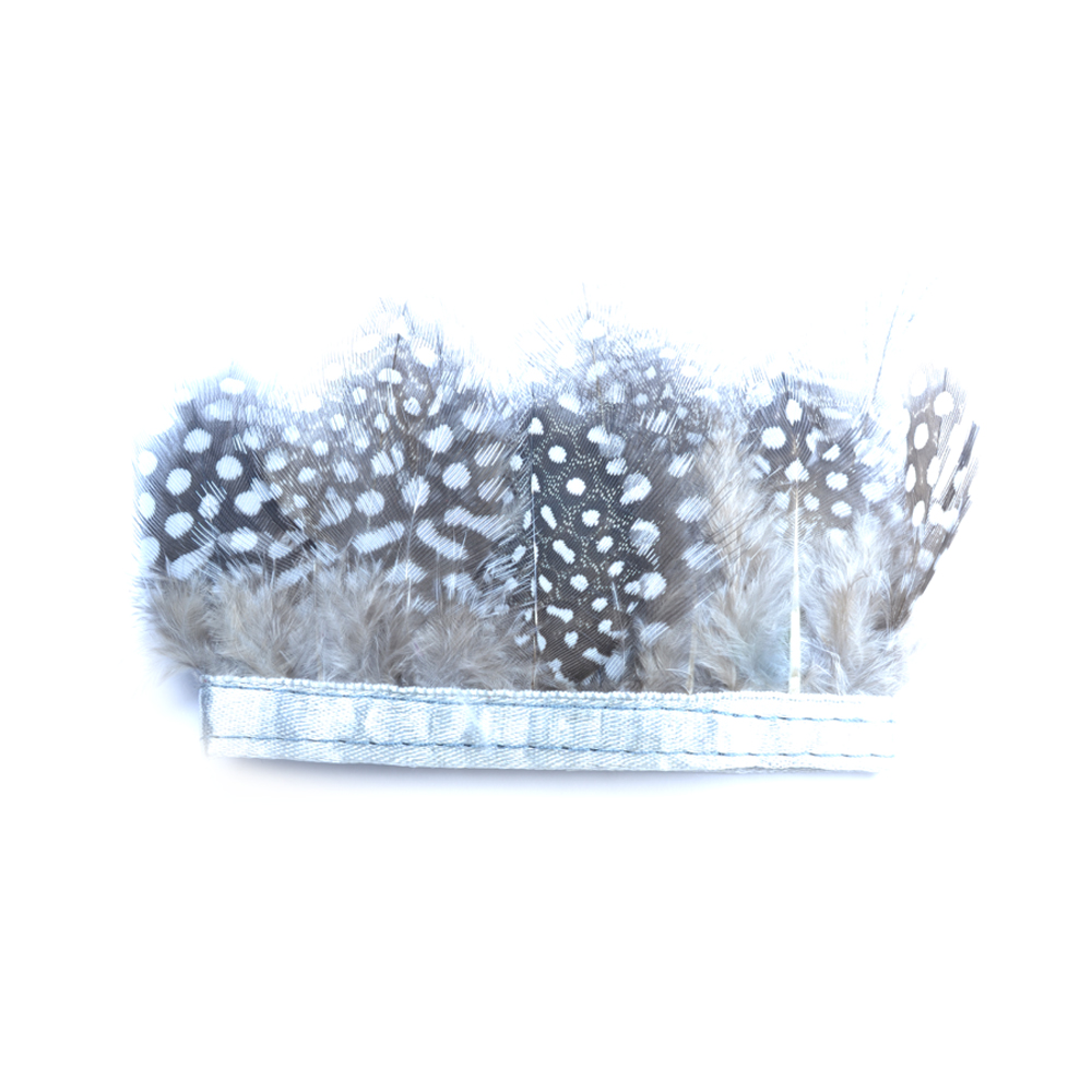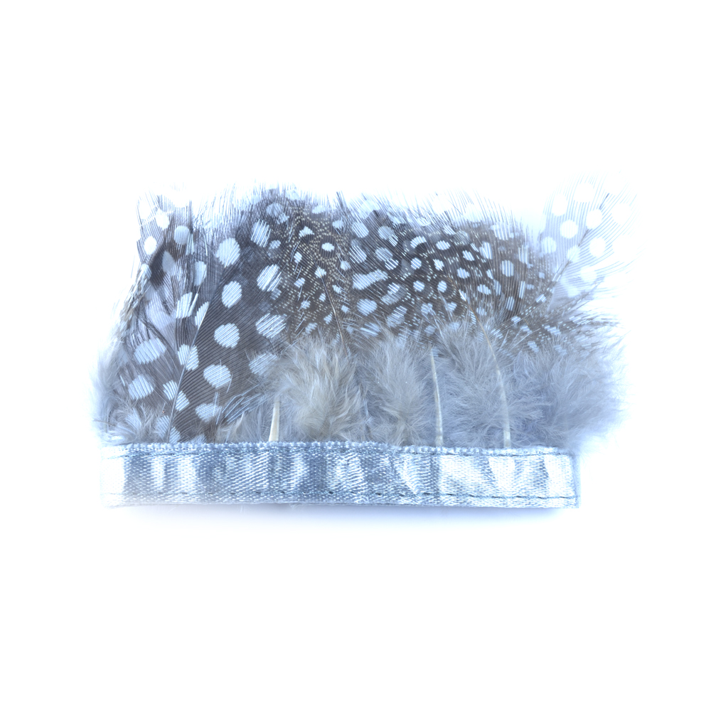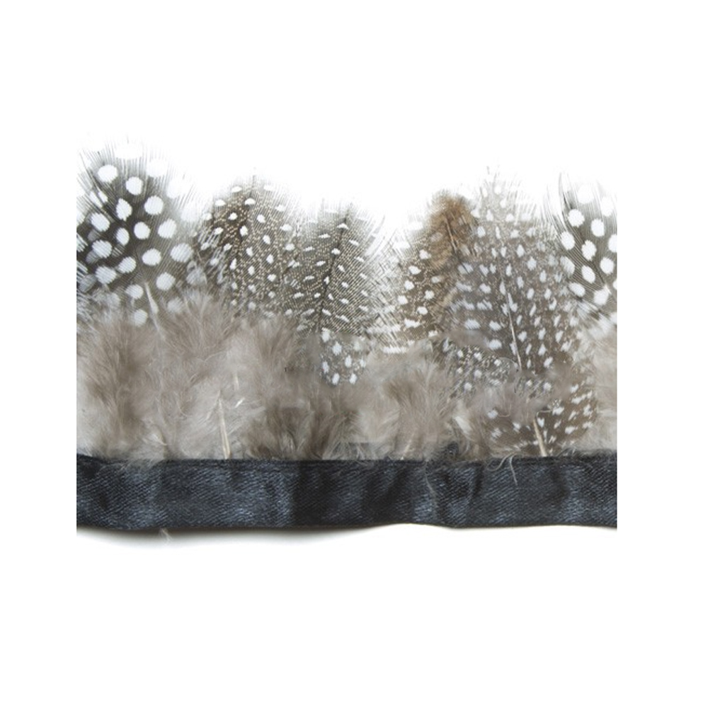 Galon de plumes de pintade. Mesure 05-06cm de largeur. Vendu en format 1 mètre. Ces plumes sont de plus en plus utilisées pour la décoration de bibis . Nous vous proposons ces plumes en différents formats et lots, ainsi qu’en plusieurs coloris et tailles.