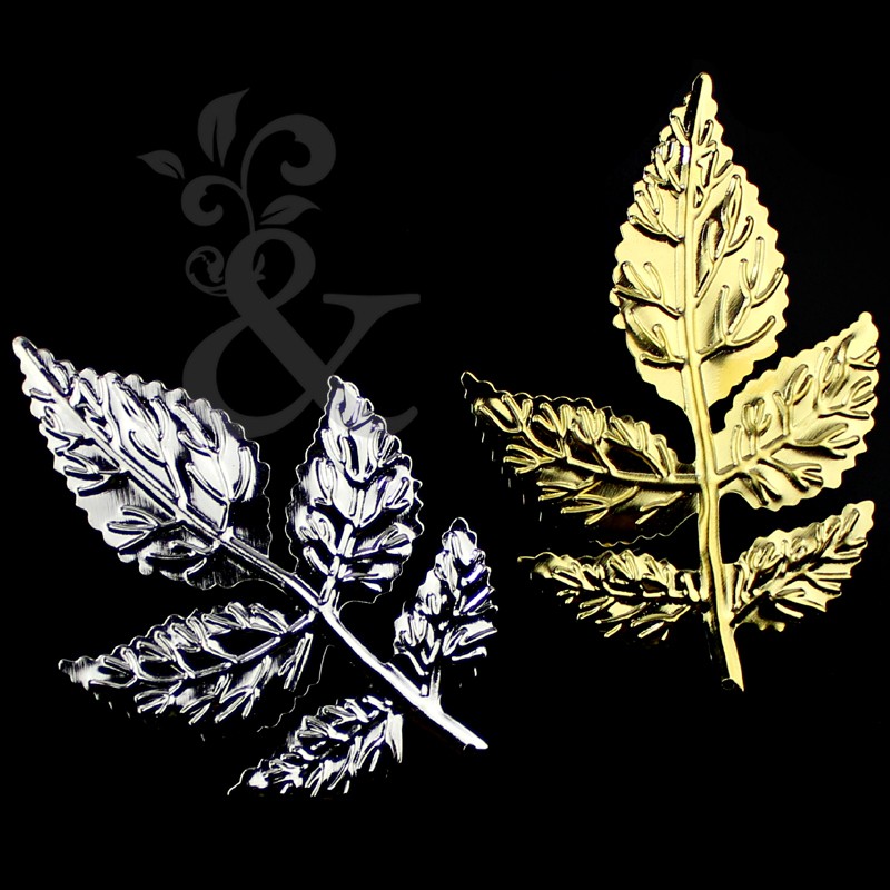 Ornement en forme de feuille en acier. Facilement malléable car la feuille est très fine. Mesure 08x05cm. Vendue à l’unité.