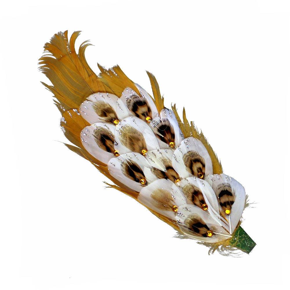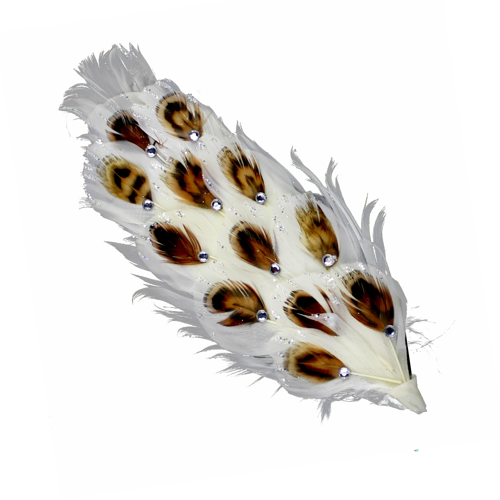 Petit ornement en plumes avec strass. Mesure 12x05cm.