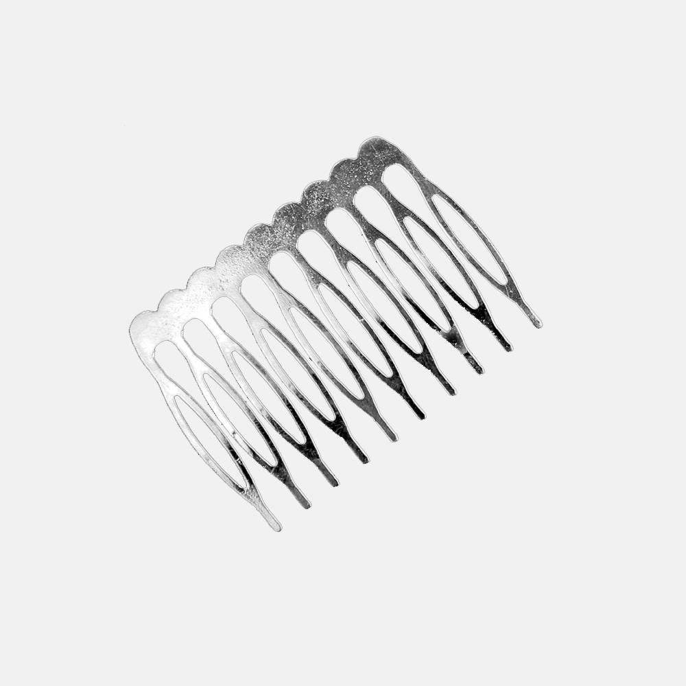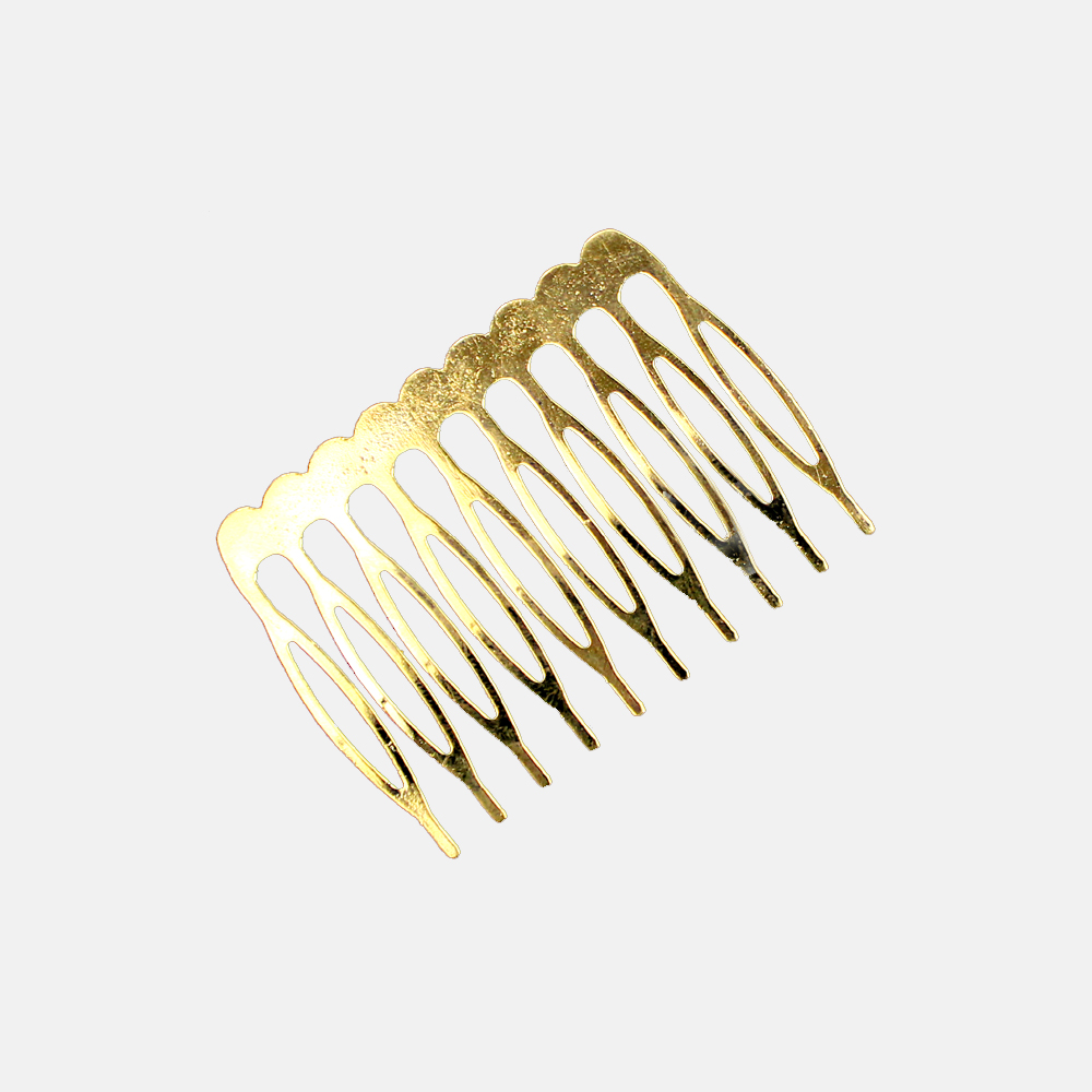 Peigne en métal à dix dents. Mesure 05cm de longueur. Très utilisé pour fixer les coiffes plus simples aux cheveux.