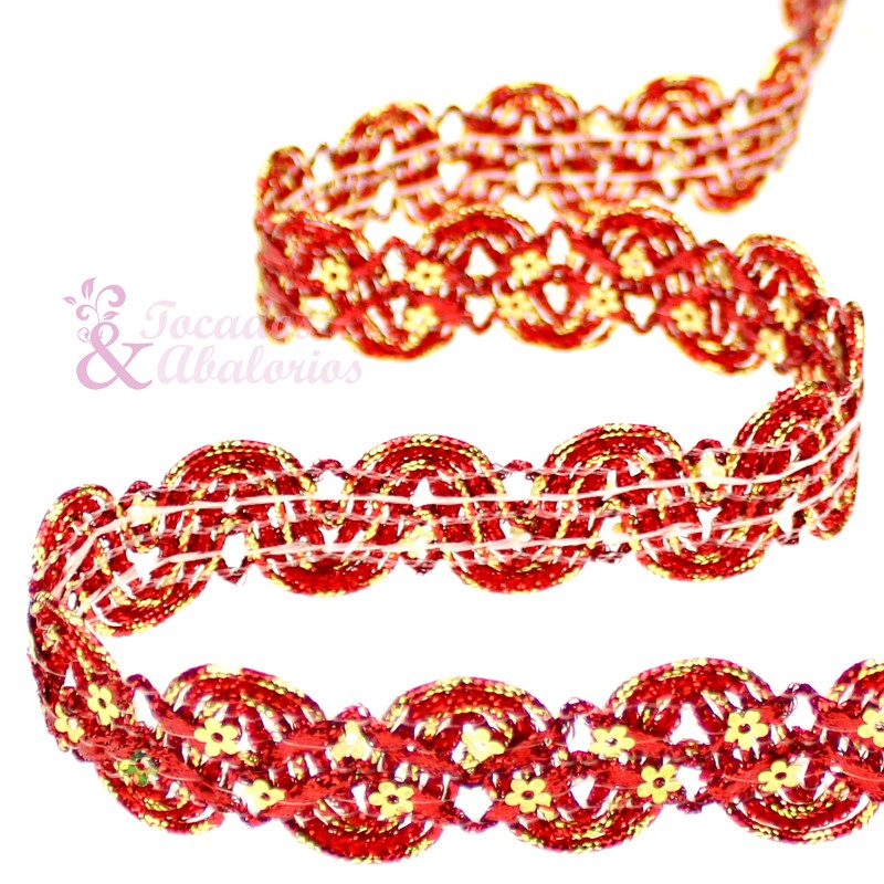 Cinta ondulina de lamé y pequeñas lentejuelas en forma de flores. Este tipo de cintas resaltará, sin lugar a dudas, su vestuario, tocados, zapatos y complementos. CORTE DE 1 METRO.