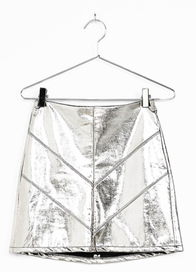 mini falda de polipiel en plata de Bershka camiseta de Zara TRF serigrafiada